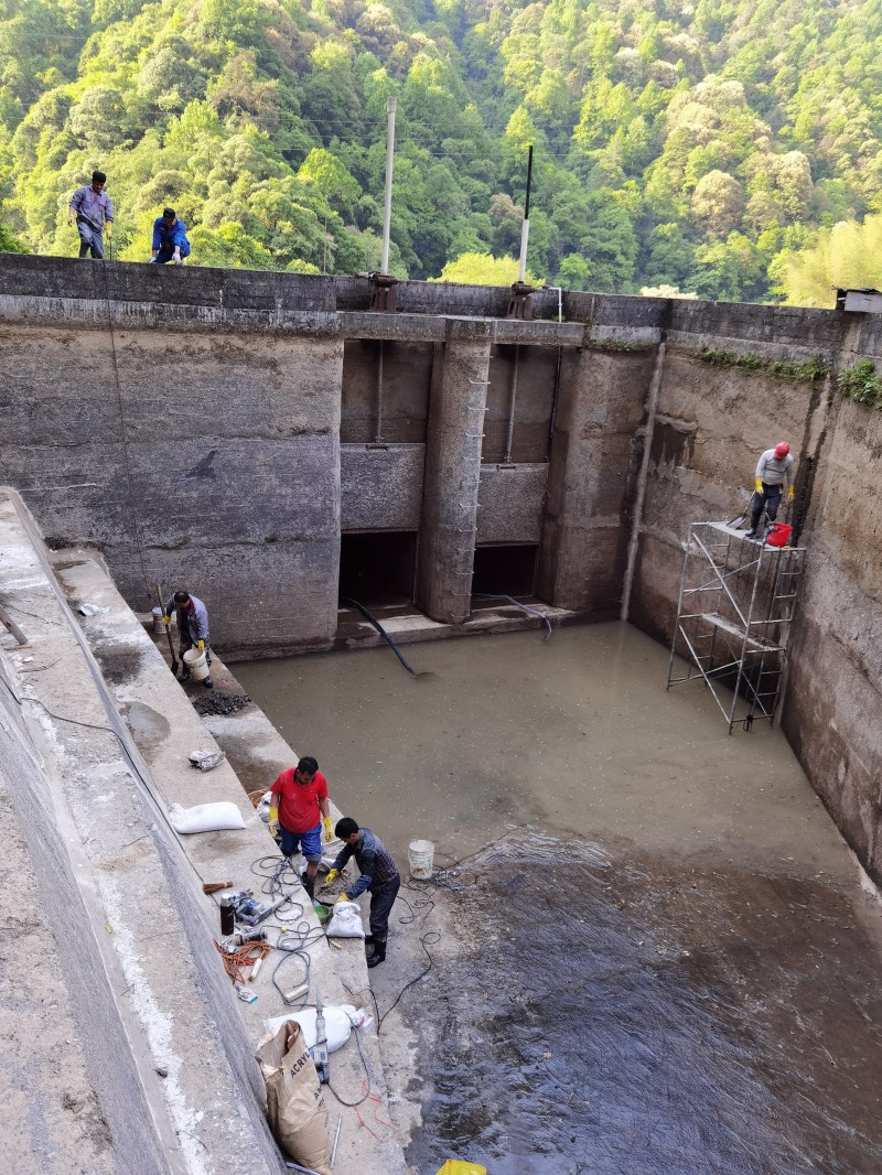 化學(xué)灌漿處理:在地下廠房滲漏處理中,化學(xué)灌漿是一種有效的方法。通過鉆孔埋設(shè)灌漿嘴,使用壓力將化學(xué)漿液注入混凝土內(nèi)部的縫隙中,使其擴(kuò)散、凝固,達(dá)到防水、堵漏、補(bǔ)強(qiáng)和加固的目的。根據(jù)灌漿的壓力和速度,可分為高壓快速灌漿法和低壓慢速灌漿法。高壓化學(xué)灌漿技術(shù)利用灌漿機(jī)產(chǎn)生的高壓,將化學(xué)料液灌注到混凝土內(nèi)部的縫隙中,擠走縫中的水并填滿縫隙,達(dá)到止水的目的。12