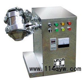 該機用于煤炭、化工、制藥、食品、礦冶、建材以及科研單位的粉狀、顆粒狀物料的高均勻度混合。該機的混合筒多方向運動,物料無離心力作用,無比重偏析及分層、積聚現象,各組分可有懸殊的重量比,混合率達99.9%以上,是目前各種混合機中的一種較理想的產品。筒體裝料率大,最高可達80%(普通混合機僅為40%),效率高,混合時間短。