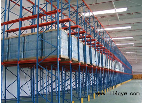 適用于存儲量大,品種少的貨物,叉車可直接進入貨物能道存儲貨物,倉庫利用率高。