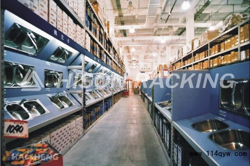建材超市中通常采用橫梁式貨架配置金屬網(wǎng)孔板,掛鉤組合,同時需要精良的木工裝修來共同展示店堂內(nèi)的產(chǎn)品。