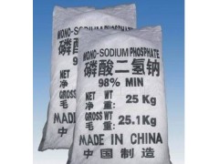 性能特點:密度:1.949/cm 熔點:60℃。有無水物,一水物和二水物三種。無水物為白色結晶粉末,微吸濕,極易溶于水。無水物系無色斜方晶系結晶體,易溶于水,水溶液呈酸性反應(PH=4.5),不溶于醇,微滾于氯傷。100℃失去結晶水而成無水物。二水物也極易溶于水,潮濕空氣中易結塊,100℃時則脫水成無水物,190-210℃時生成焦磷酸鈉,280-300℃分解為偏磷酸鈉。水溶液都呈酸性。目前作為產品的以二水物為主。在一定的ph值下,由碳酸鈉與磷酸反應或由磷酸氫二鈉與一定比例的磷酸反應制得在濕空氣中易結塊。