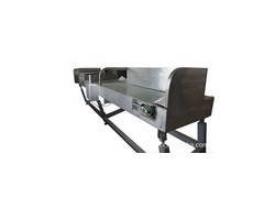 一種散粒物料均料機,其均料執行機構為可繞支承軸往復擺動的活動均料板,進料口和出料口分別設置于機殼上方和下方,活動均料板設置于進、出料口之間的物料通道外。該均料機結構簡單、占地面積小,尤其適宜于在煙草打葉除梗流水線上使用。