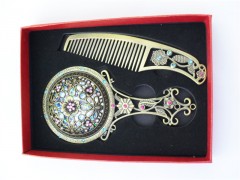 化妝鏡梳子套盒鏤空不銹鋼創意禮品鏡子