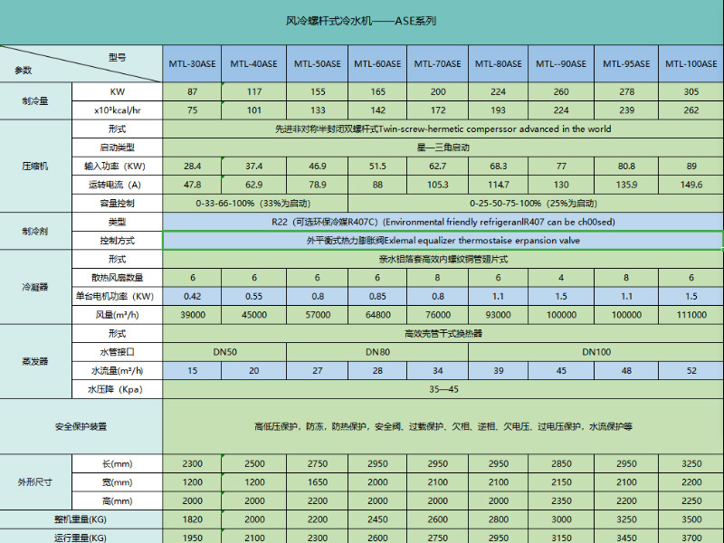 (1)多重保護:壓縮機排氣超溫、電機超溫、冷水防凍等溫度保護:過電流、缺相、逆相等電氣保護:冷媒系統高低壓、油位、斷水等非常狀態保護
