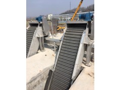 4.4耙齒鏈?zhǔn)怯扇舾山M不銹鋼制成的特殊形耙齒,按一定的排列次序裝配在耙齒軸上形成封閉式耙齒鏈,其下部安裝在進(jìn)水渠水體中。當(dāng)傳動(dòng)系統(tǒng)帶動(dòng)鏈輪作勻速定向旋轉(zhuǎn)時(shí),整個(gè)耙齒鏈便自上而下運(yùn)動(dòng),并攜帶附在齒耙上的固體雜物從液體中分離出來,流體則通過齒耙間的間隙流過去,整個(gè)工作狀態(tài)連續(xù)進(jìn)行。