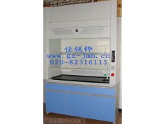 (2)鋼木通風櫥上箱體:采用1.2mm冷軋鋼板折彎、沖壓,表面經(jīng)除油、酸洗、磷化作防銹處理,再靜電粉沫噴涂EPOXY防護層做耐酸堿耐腐蝕表面處理,其噴涂EPOXY防護層附著力經(jīng)落物撞擊試驗測試合格;內(nèi)襯及導流板選用5mm抗倍特板,內(nèi)部分三段式排風設計,可消除排氣死角與不同密度氣體的有效排放;控制面板設在外立柱側面板上,方便觀察與操作。