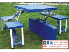 杭州百佳遮陽蓬有限公司專業生產折疊桌椅。連體折疊桌椅該產品打開是一套桌椅,折疊后是一個盒子,桌面采用高級工程塑料ABS(高檔電器外殼一般用的是這種材料,有些廠家的產品用的是PP料,即普通塑料,家里面桶、盆之類的用的是PP料,兩種材料價格相差50%)具有高強度, 耐磨擦, 耐老化, 顏色鮮麗等優點,主要受力支架采用鋁合金或優質鋼材,可中置太陽傘;具有外觀流暢,強度大,重量輕,折疊易,攜帶方便等優點.適合野餐、戶外棋牌、戶外工作、單位節假日資詢、會展、釣魚、天臺、家庭備用等多個場合 。